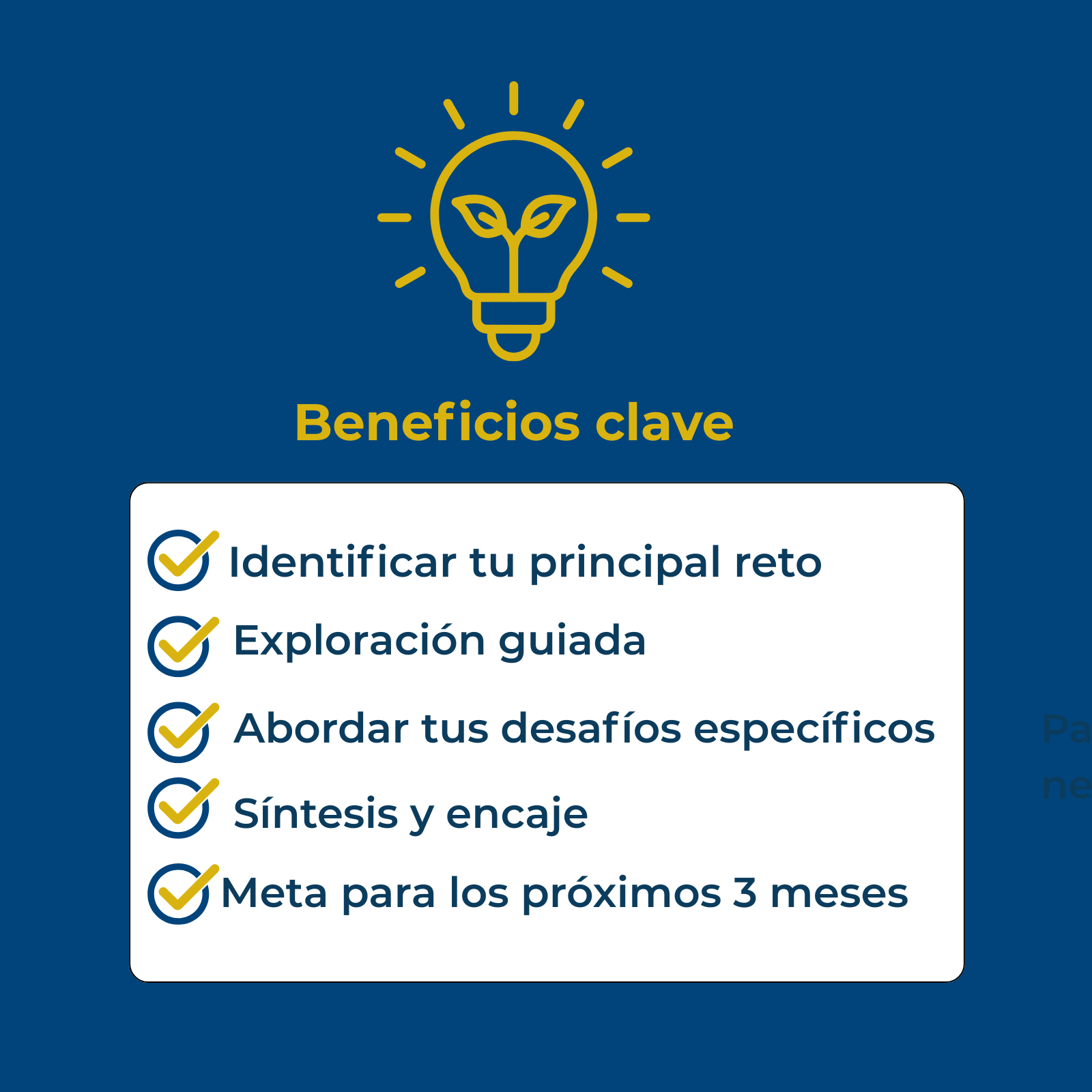 ✅ Identificar tu principal reto: Cada sesión está diseñada para ti. Tu negocio, tus desafíos.